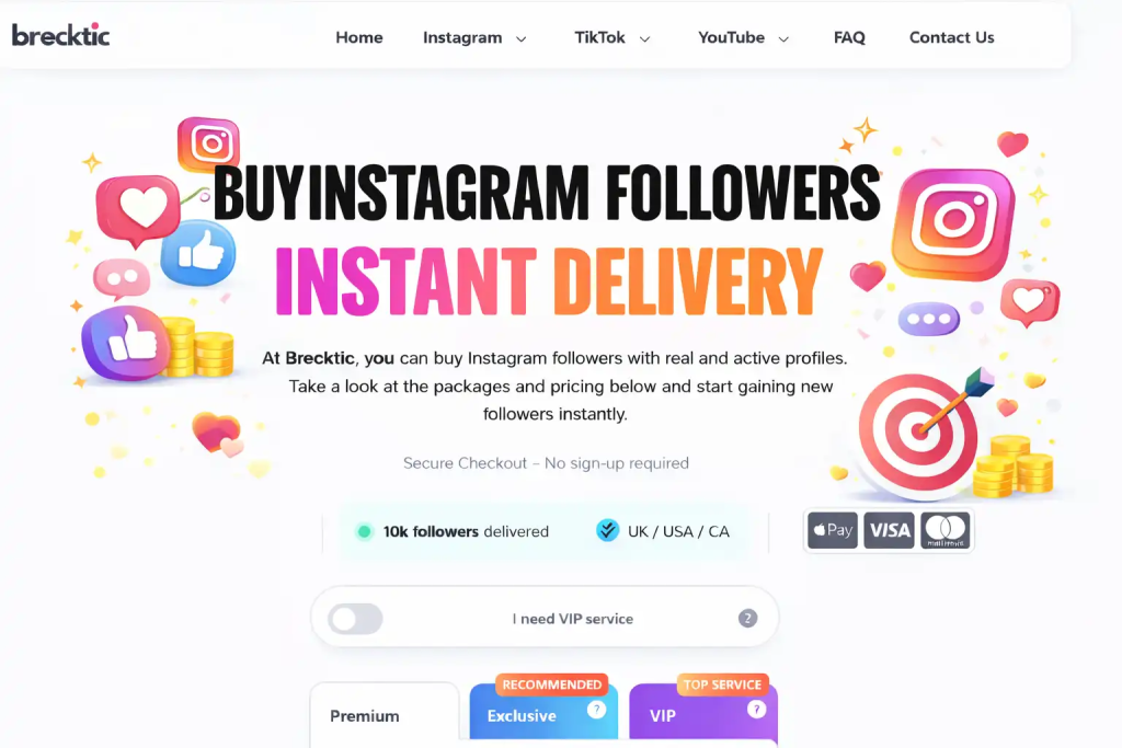 Brecktic has established itself as a long-standing player in the social media growth space, with experience dating back to 2012. Originally focused on Instagram and later expanding to TikTok, the platform offers followers, likes, and views backed by more than a decade in the industry. It appeals to creators and entrepreneurs who prefer quick results and a straightforward process.