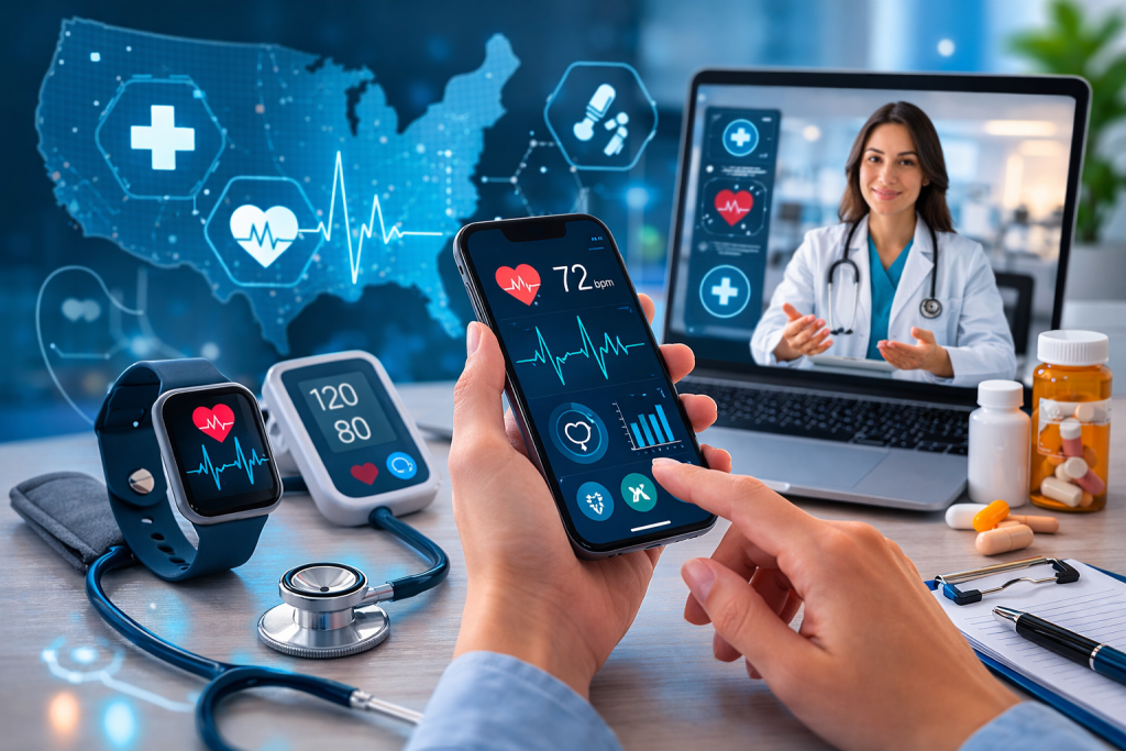 Telehealth has become a cornerstone of digital healthcare in the U.S. It allows patients to consult doctors remotely through video calls, messaging platforms, or specialized medical apps.